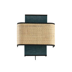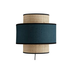 Applique murale bi-matière en rabane et lin bleu canard H24 cm LITCHI