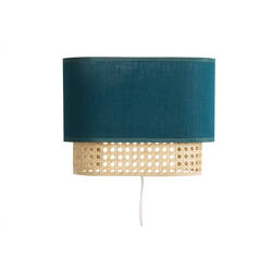 Applique murale en tissu bleu canard et cannage rotin naturel H20 cm TIWY