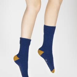 Chaussettes Hautes en Soie Bleu Minuit - Talon et pointe Turquoise