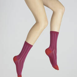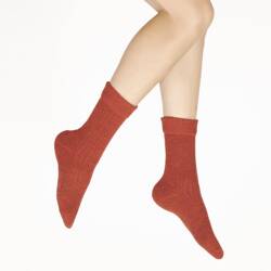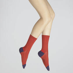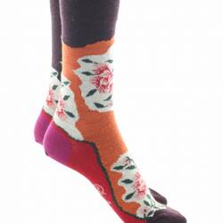 Chaussettes femme laine peignée Berthe Pivoines Orange/Bordeaux