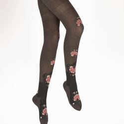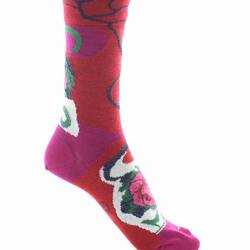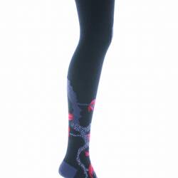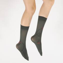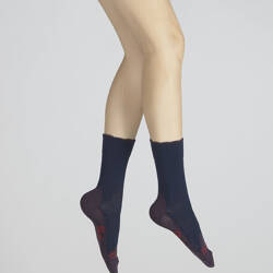 Mi-chaussettes 40D rouge Fleurs noires et marine