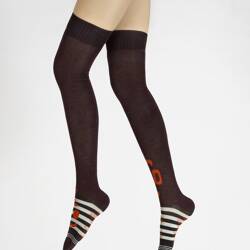 Chaussettes Femme Au Parapluie Noir Et Argent