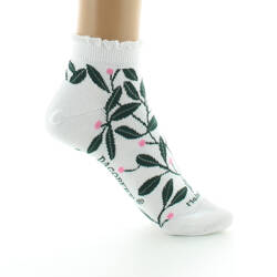 Socquettes femme coton blanc feuilles vertes
