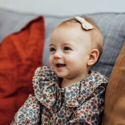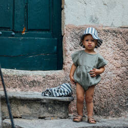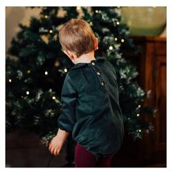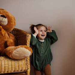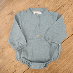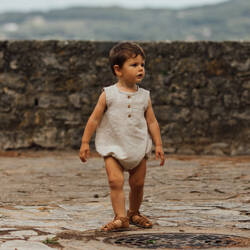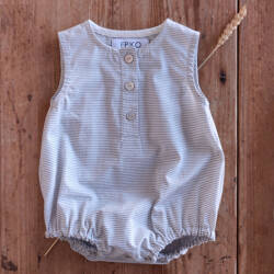 Barboteuse bébé tricot beige boutons bois fabriquée en France