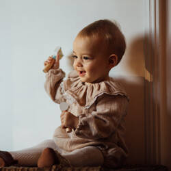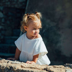 Barboteuse blanche JASMIN, en double gaze de coton plumetis
