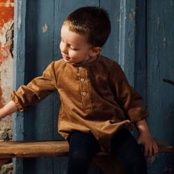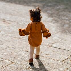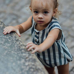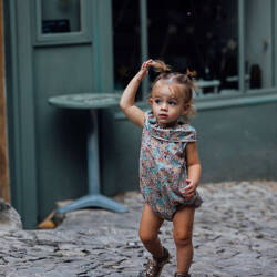 Barboteuse à bretelles bébé "Eden" évolutive en serrsucker vichy rouille et blanc
