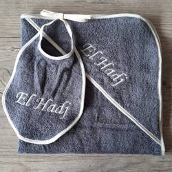 Lot Bébé Personnalisé – Sortie de Bain et Bavoir Assortis – Éponge Oeko-Tex – Couleurs au Choix
