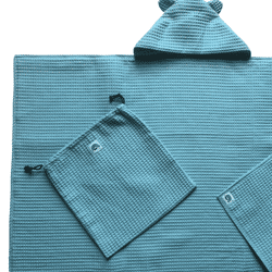 Ma première cape de bain en gaze de coton et bambou, Bleuet