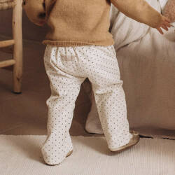 Pantalon bébé "Mahé" en velours côtelé blanc cassé à petits pois noirs