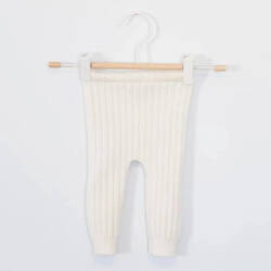 Pantalon legging bébé "Anatole" écru / beige en laine mélangée tricotée en France