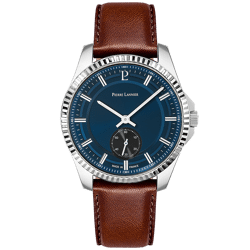 Montre Homme La Précise bracelet cuir marron fond bleu chromée