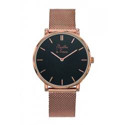 Montre Mixte L'Indécise maille dorée rose fond noir rose dorée