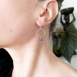 Boucles d'oreilles pendantes cercle avec perle améthyste Maya en