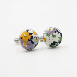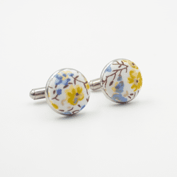 Boutons de manchettes ronds argent en Liberty Capel moutarde