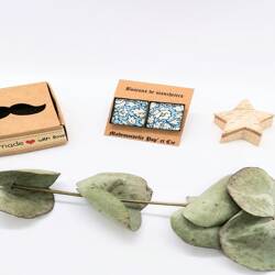 Boutons de manchettes carrés cuivre en Liberty Eloise bleu