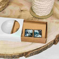 Boutons de manchettes carrés cuivre en Liberty Feather Fields bleu clair