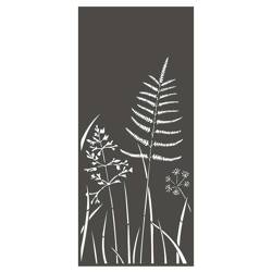 Panneau décoratif en métal L.80 x H.180cm - Fougère et graminées - Gris