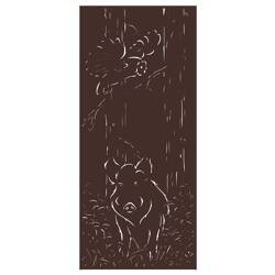 Panneau décoratif extérieur en métal L.80 x H.180cm - Sanglier et chouette - Marron