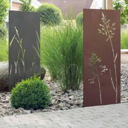 Panneau décoratif extérieur en métal L.53 x H.144cm - Graminées marron