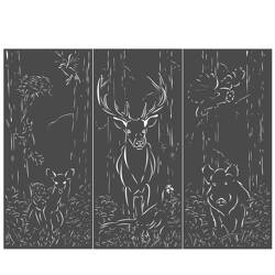 Panneaux décoratifs en métal L.240 x H.180cm Gris - Scène foret - lot de 3