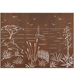 Panneaux décoratifs en acier corten L.240 x H.180cm - Bord de mer - 3 panneaux