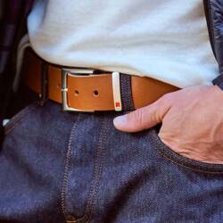 CEINTURE BOUCLE CARROND 821 cuir camel Unisexe