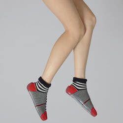 Chausson chaussette mixte Rayures asymetriques marine/ivoire