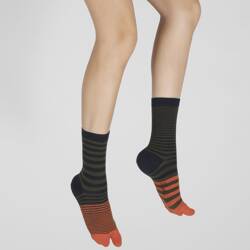 Chaussette Tabi rayures asymétriques marine kaki et orange