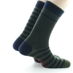 Chaussettes homme coton rayures asymétriques bleu marine et kaki