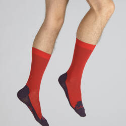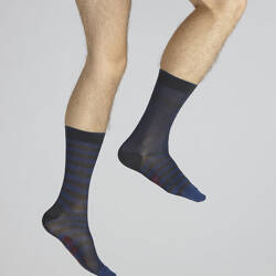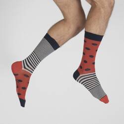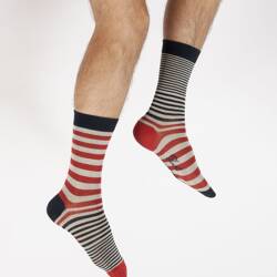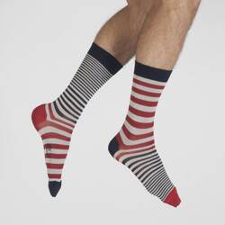 Chaussettes homme fil d'Ecosse rayures asymétrique marine rouge
