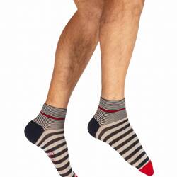 Mi-bas laine homme rayures asymétriques Marine Rouge Écru