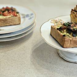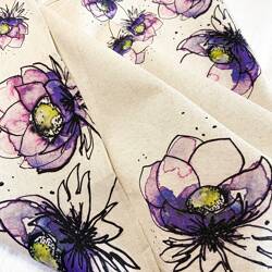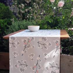 Chemin de table lin peint & brodé sur-mesure Bleu