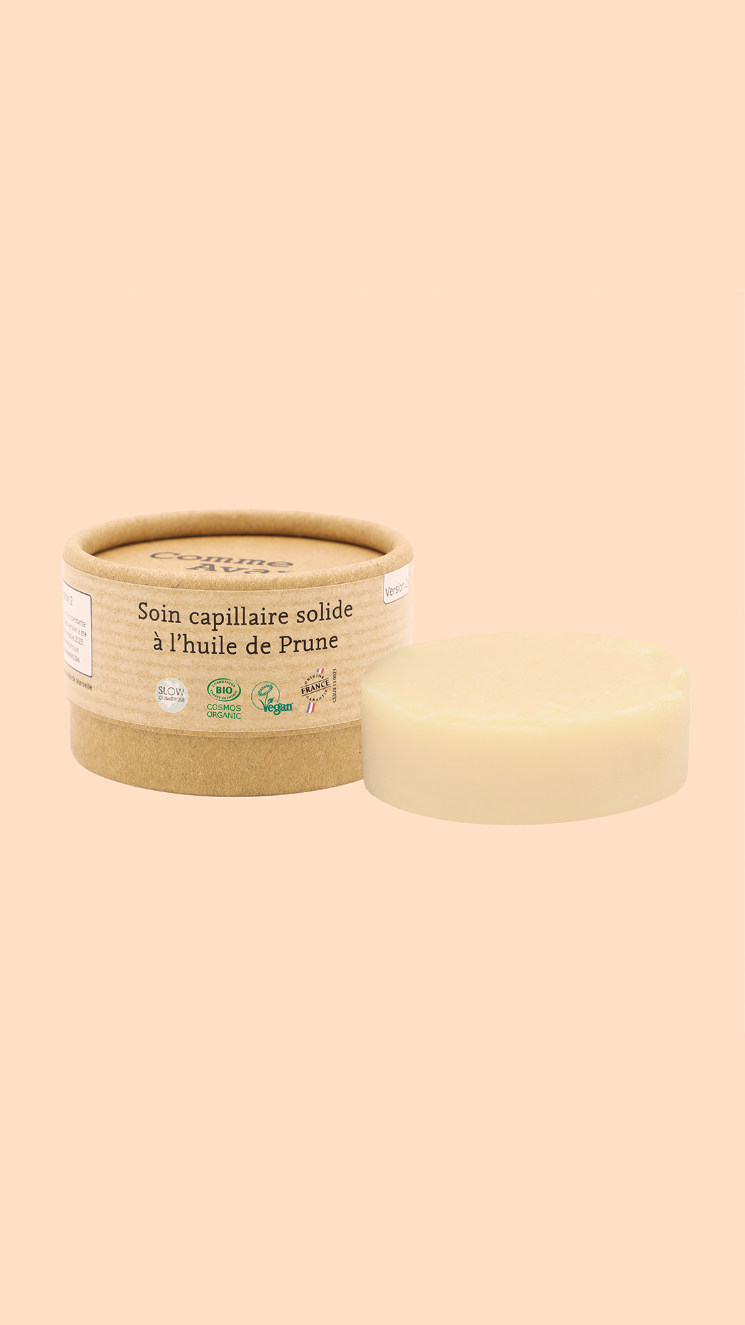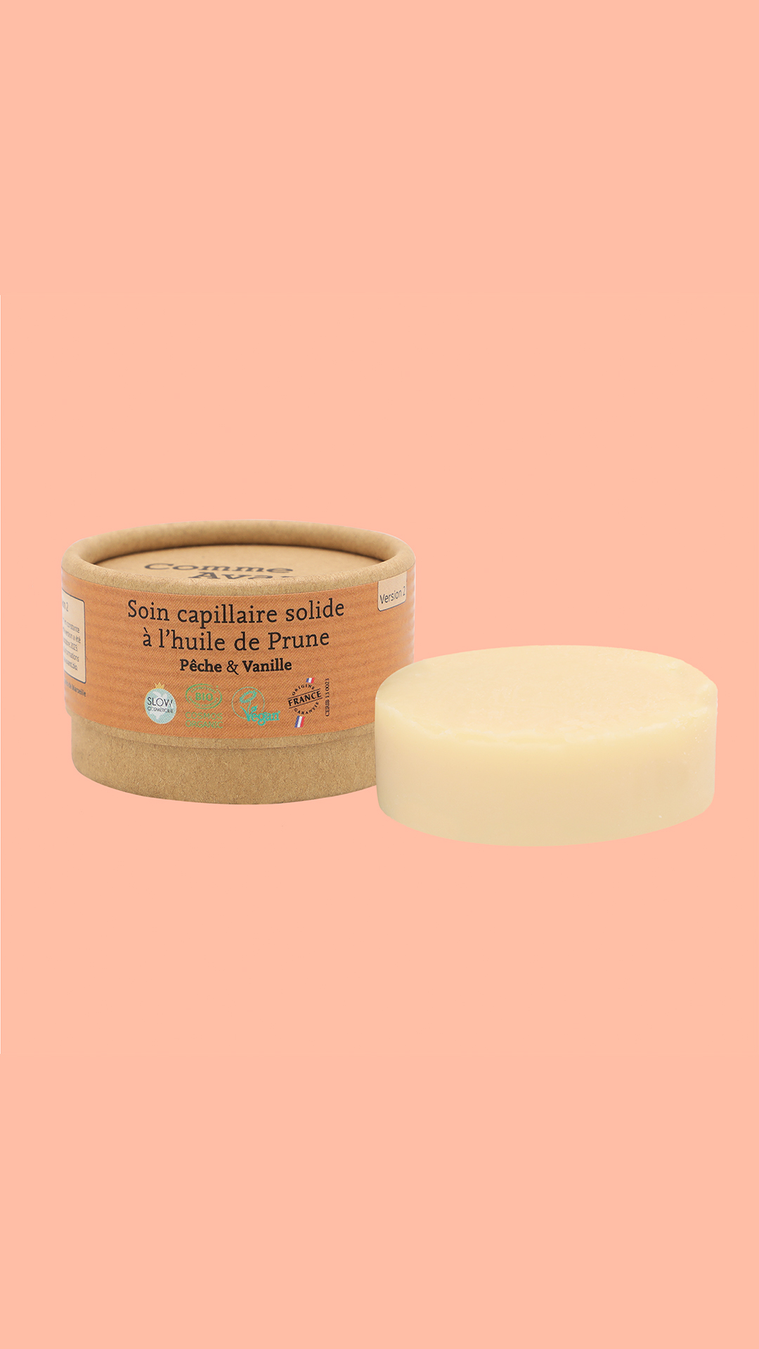 Soin Capillaire Bio & Solide - Nourrit et Répare - Masque Cheveux à l'Huile de Prune - Pêche & Vanille