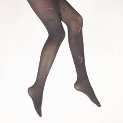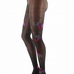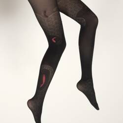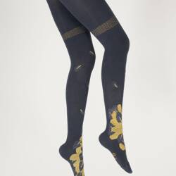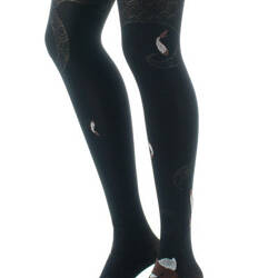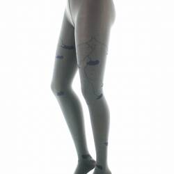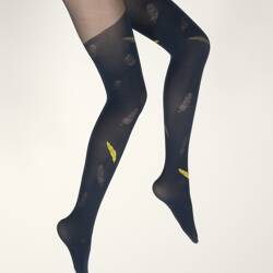 Collants femme 40D maille dévorée pétrole oiseau lyre