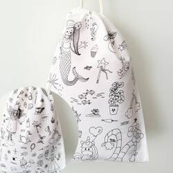 COLORIAGE LAVABLE - Pochon Girly multi-usages en tissu à colorier + 3 feutres à l’eau