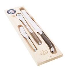 Coffret 3 pièces petit déjeuner Laguiole manches coloris lin