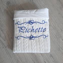 Couverture en tissu matelassé épais reliéf torsadé doublé en minky lisse doux personnalisé, brodée prénom et/ou ornement