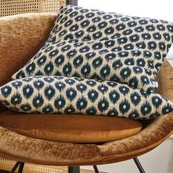 Coussin velours singe et perroquets bleu