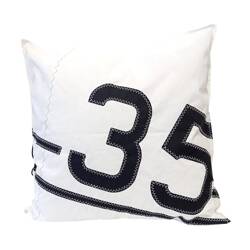 Grand coussin en voile blanche, numéro 35 noir