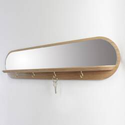Moonlight - Miroir en chêne avec étagère et crochets - Crochets dorés