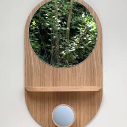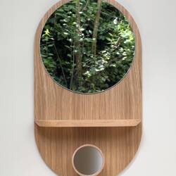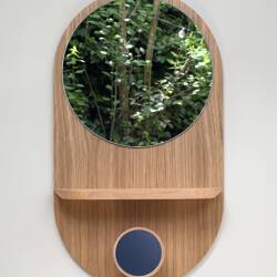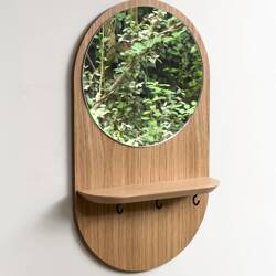 Éclipse Clairon - Miroir avec étagère et patère en chêne - Marin