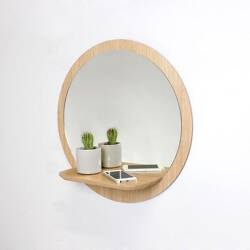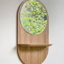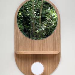 Éclipse Clairon - Miroir avec étagère et patère en chêne - Hélios