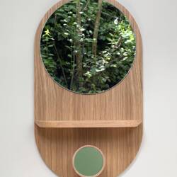 Éclipse Clairon - Miroir avec étagère et patère en chêne - Lichen