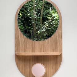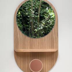 Éclipse Clairon - Miroir avec étagère et patère en chêne - Rose