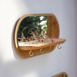 Mini moonlight - Miroir en chêne avec étagère et crochets - Crochets dorés