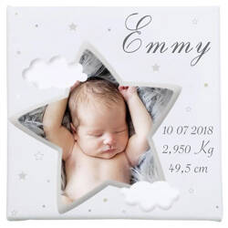 Personnalisez votre cadre photo naissance avec nuages et étoiles