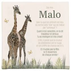Cadre prénom personnalisé – Thème Safari et animaux de la savane