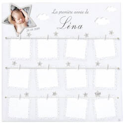 Cadre photo première année personnalisé – Thème Nuages & Étoiles