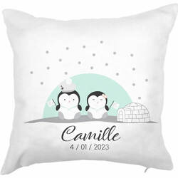 Coussin naissance personnalisé – Collection Banquise 🐧❄️