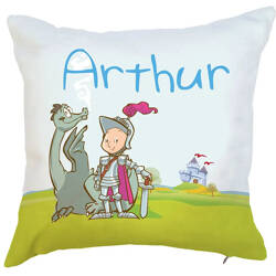 Coussin prénom du chevalier sur sa monture et avec son dragon